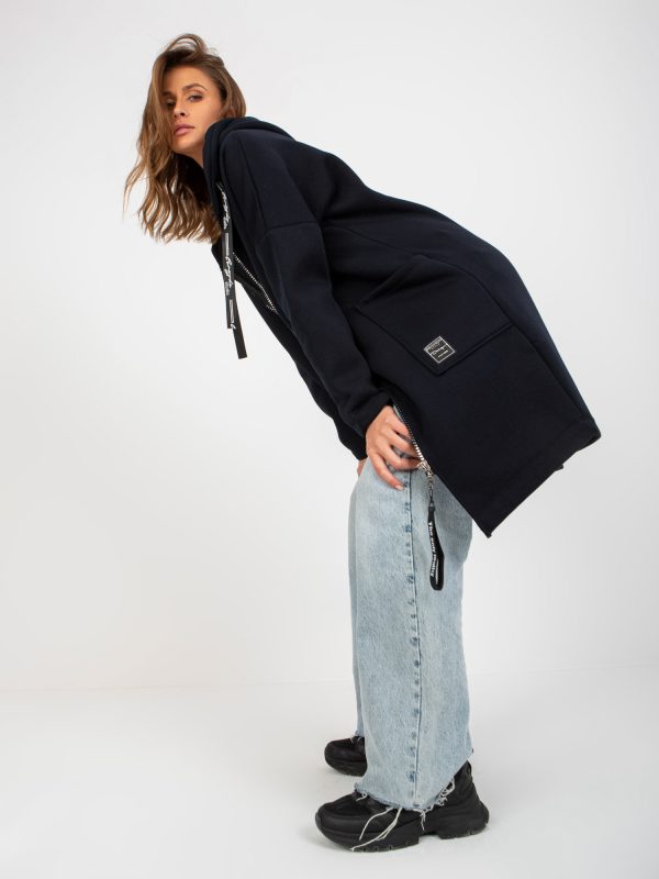 Granatowa długa dresowa bluza rozpinana z kieszeniami .